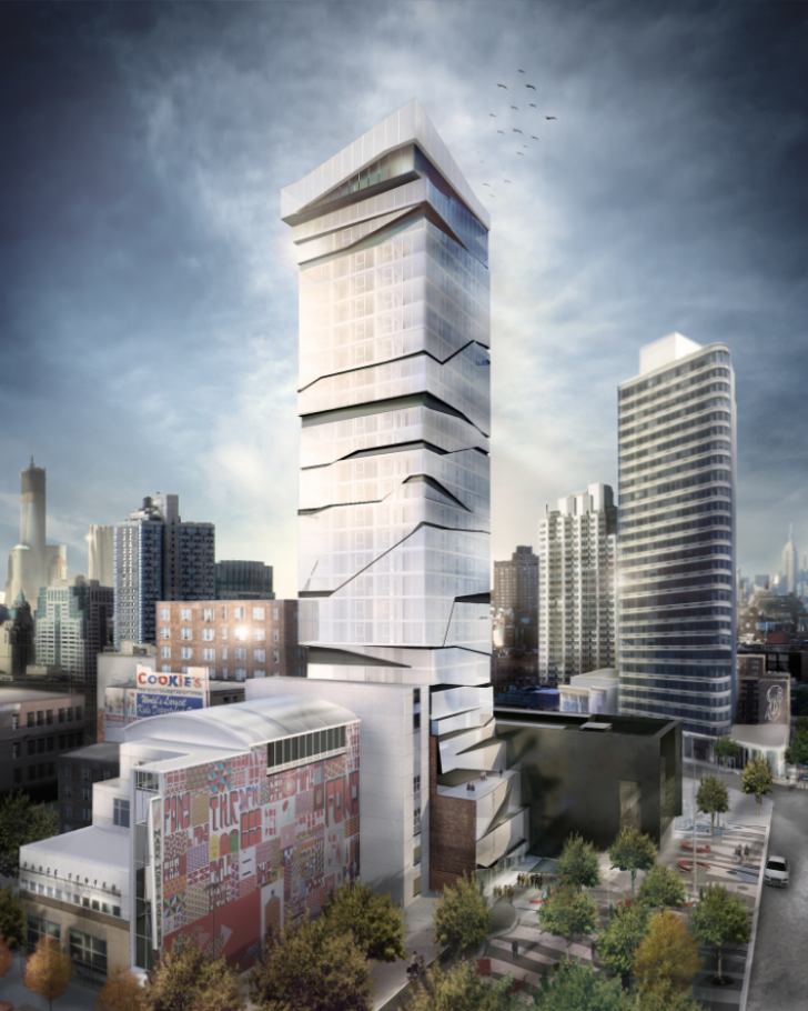 In February, plans were announced for a 200-room hotel in the BAM Cultural District, and we chatted with a member of the development to get more details about the 30-story, Thomas Leeser designed tower soon to rise at 95 Rockwell Place. Mitch Garrett, Vice President of Acquisitions and Development at VOS Hospitality, Second Development Services' partner on the project, sent along a few more renderings, telling us the design is trying to "literally fracture the mold" with a sliced facade featuring crevice-like cutouts....read more at Curbed NY >>